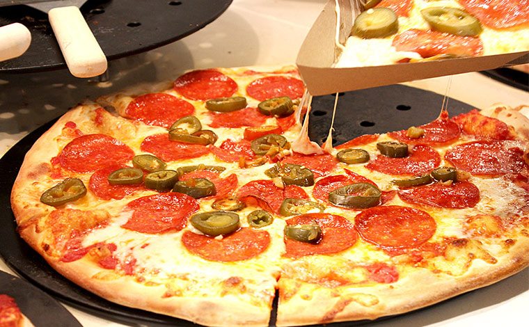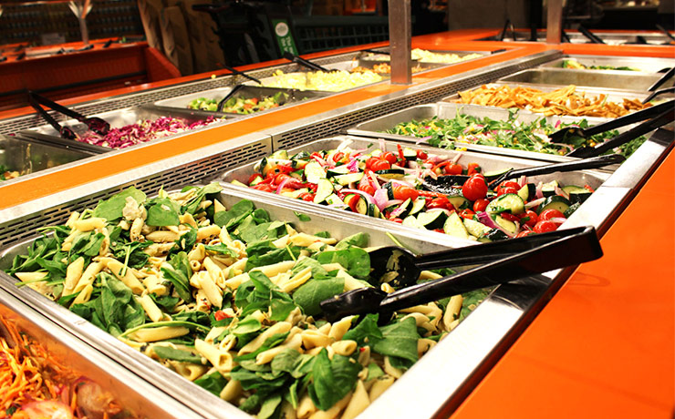 奥の方にある量り売りのホットバーやサラダバー、ピザやケーキ類のコーナーは、一番後に立ち寄るのがスムーズです。