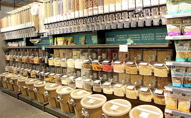 また、コーヒーやシリアルなども「量り売り」で買うことができます。特に面白いのは、その場でペースト状にできるピーナッツバター。