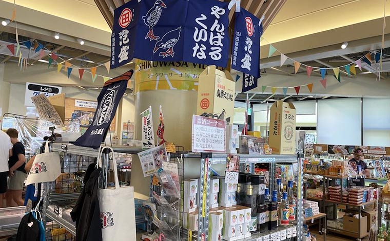 特筆すべきは、「北部12市町村特産品コーナー」が設けられていること。許田のある名護市をはじめ、今帰仁村、国頭村、東村、本部町など、やんばる12市町村の特産品が並び、各市町村を回らずともお土産が買えるのも魅力です。
