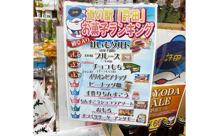 リゾート滞在時に訪れても、最終日の帰り道に立ち寄って買い忘れたお土産を買うにも、便利で心強い道の駅「許田」。店内には「お菓子ランキング」のポップが貼られているので、お土産に迷ったらこれを参考にしてみてもいいかもしれません。