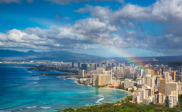 旅行の荷物で悩むものの1つ、雨具。数日間を過ごすため、迷ってしまいますよね。でも、晴天率の高いハワイは、終日雨が降ることはそれほど多くなく、雨季でも時折サァッと通り雨が降る程度。そしてそんな時、少しの雨であればハワイのローカルは雨宿りをしたり、気にせずそのまま歩いたりしています。なぜなら、しばらく経てば止むためです。空を眺めながら雨が止むのを待つ。ゆったりした旅行だからこそできるひと時といえます。なお、通り雨の後は虹が出やすく、美しい虹を眺めるのハワイ旅行の楽しみの1つです。
