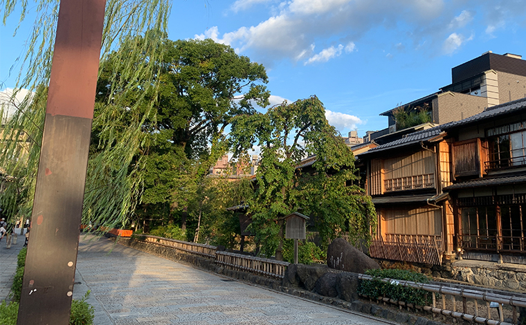 京都らしい伝統的な街並みや雰囲気を楽しめる祇園。花街らしい石畳の路地や町屋の風情は、京都へ来たらぜひ訪れたいところ。