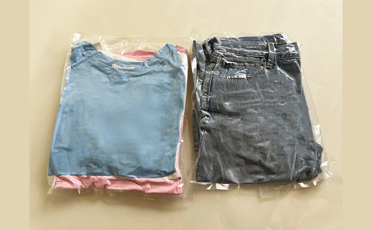また、圧縮袋に複数枚の洋服を入れて圧縮すれば、薄くコンパクトに。トップスとボトムスで分けて収納するのがおすすめです。