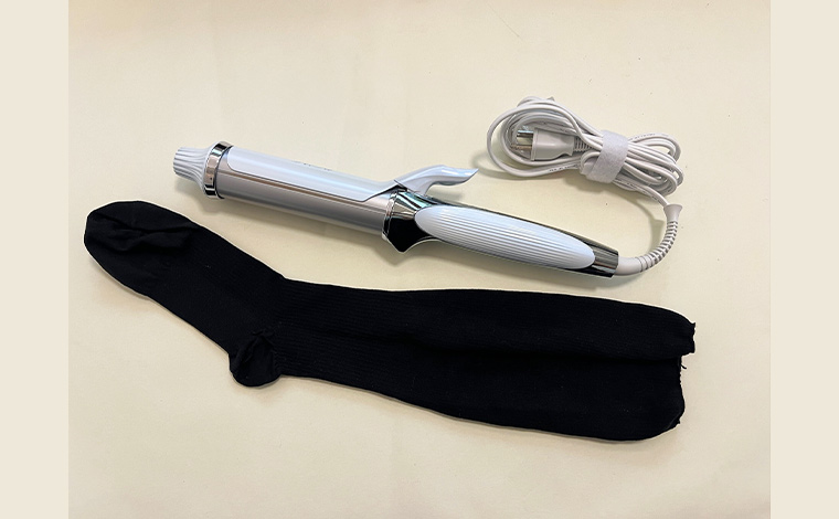 スタイリングに便利なヘアアイロンを収納するのにおすすめなのが、ロングソックス。
