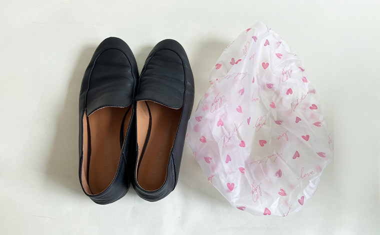 パッキングでスペースを取ってしまう靴やサンダル。ケースや靴袋はかさばりやすいので、ぜひシャワーキャップに入れてみましょう。
