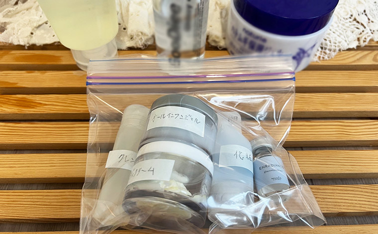 化粧水や乳液などのスキンケアは、いつも使っているお気に入りアイテムを旅行先にも持っていきたいところ。ボトルごと持っていくとサイズも大きく、容量も全て使い切れません。そんな時に活用したいのが、ミニボトルやミニケース。