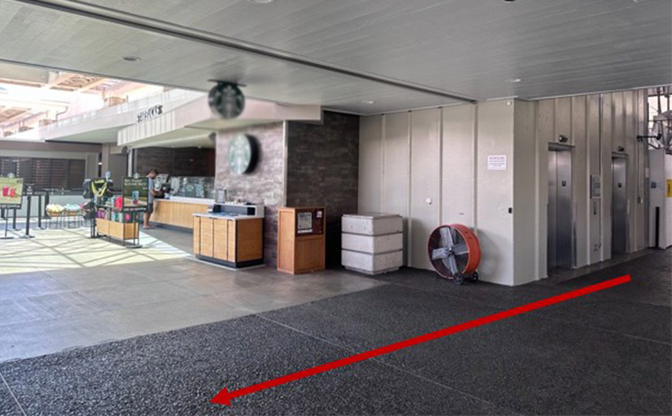 2Fに到着するとスターバックスが右手に見えるので、そこを真っすぐ進むと、ロビー5、6のライドシェア乗り場へ到着します。