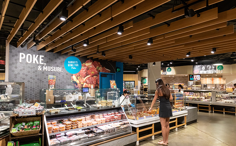 さらに、種類豊富なポケも嬉しいポイント。新鮮なアヒ(マグロ)やサーモンを使ったスパイシーな味付けなど、テイクアウトしてすぐに楽しめます。清潔感のある店内は広々としていて、ゆったりと買い物が楽しめます。