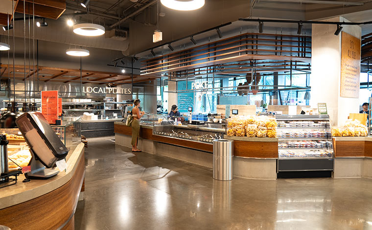 さらに、デリコーナーでは新鮮な野菜を使ったサラダや、ハワイの定番グルメ「ポケ(マグロの漬け)」などのテイクアウトメニューが揃い、気軽にローカルフードを楽しめます。2階にはイートインコーナーもあるので、テイクアウトしたデリをすぐ楽しめます。