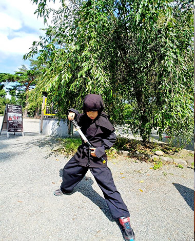 なにより嬉しいのは、忍者の衣装を着たままNINJA館に行けること。残念ながら天守閣へは貸衣装で入ることはできませんが、忍者の衣装で忍者体験をすれば、姿も心もすっかり忍者です。