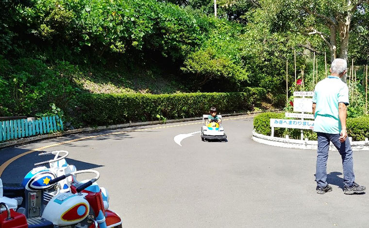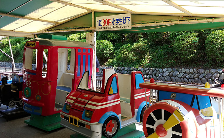 城址公園内には未就学児~小学校低学年くらいのお子様が楽しめるこども遊園地があります。バッテリーカーや豆汽車が80円、コイン式の遊具が30円と、とってもお得な価格で楽しめる嬉しいスポット。