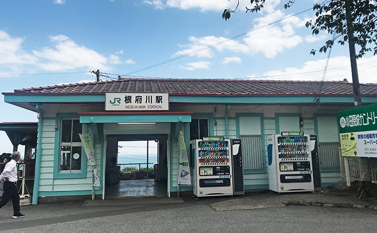 今回は平日の電車での移動だったため、風祭駅から根府川駅へ、そこから車でリゾートへ。