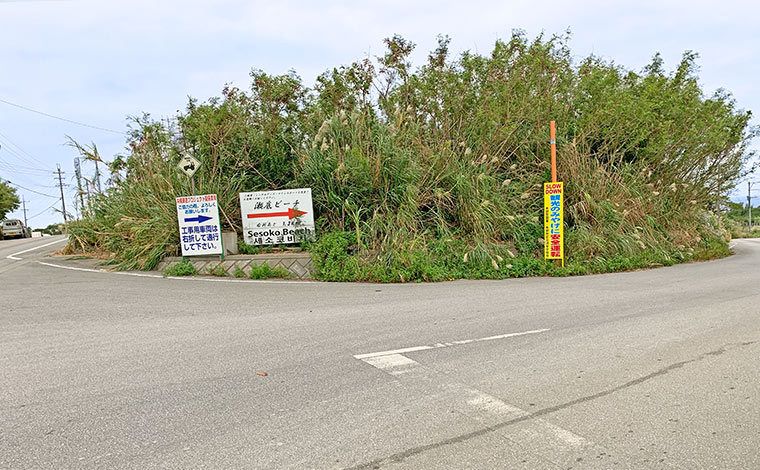 のどかな瀬底島の道をさらに漕ぎ進めると、「瀬底ビーチ」の看板が見えてきました。