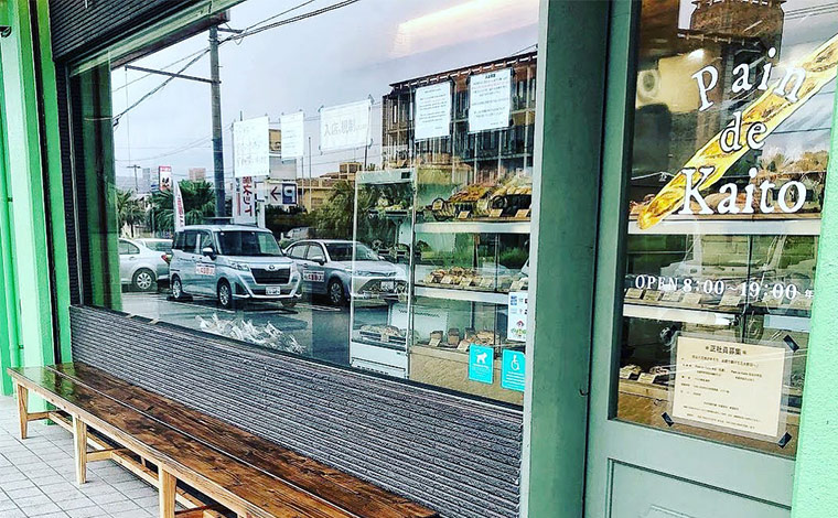 キッチン、ダイニングのあるタイムシェアの室内で、ゆったりとおいしいパンの朝食を楽しむなら名護市内にある「Pain de Kaito(パン ド カイト)」がおすすめです。沖縄県内に4店舗を展開するベーカリーで、瀬底から近い名護店が本店。朝の8時から毎日50種類以上の焼きたてのパンを販売しています。