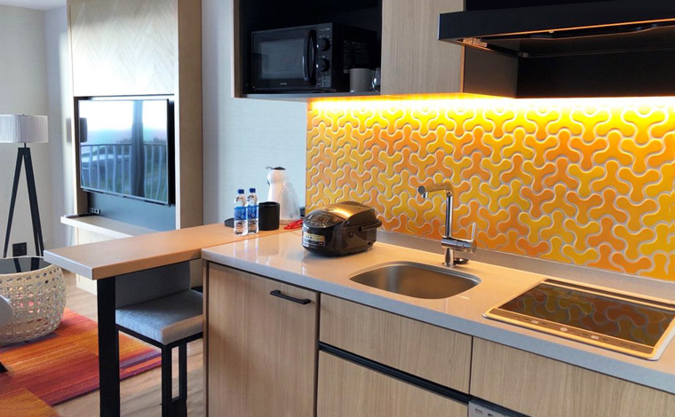 一方、スタジオタイプも負けてはいません。海外のクラブリゾートでよく見かけるスタジオのミニキッチンに比べ、ザ・ビーチリゾート瀬底は比較的広々とした造りのフルキッチンタイプ。