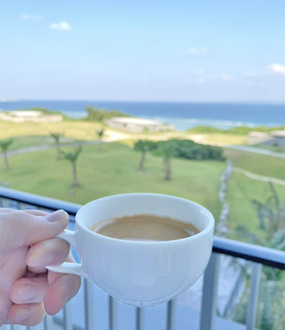 「そして、目の前に遮るものが何もなく、ゆったりと窓の外の風景を楽しめるのが、お部屋で過ごす際の醍醐味だと思います。わざわざ海の見えるカフェに行かなくても、ご自分のお部屋でカフェ気分が味わえます」とは、Mさんのレビュー。