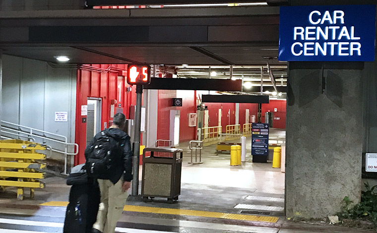 2、レンタカーの貸し出し場所は空港の敷地内にあります。出口を出て右側の歩道を進むと「Car Rental Center」のサインがあります。案内に沿って進みます。