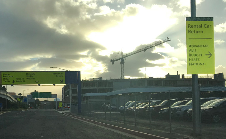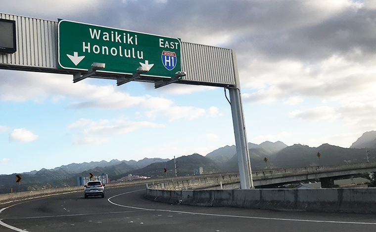 返却準備が整ったら、ホノルル空港へ。高速道路「H1」と直結しているので、ワイキキ・アラモアナ周辺から「H1」に乗ると便利です。