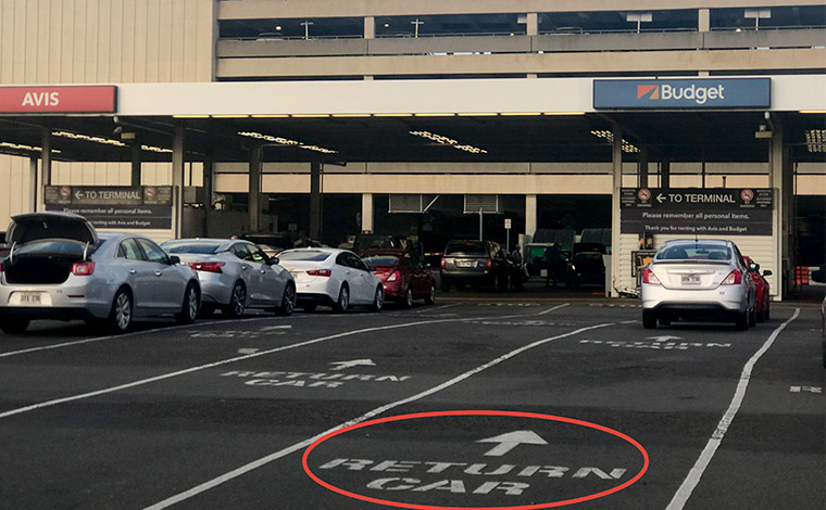 3.岐をクリアすれば、空港まではもうすぐ! 空港内では「Rental Car Return」の標識を追い掛けて、レンタカー会社の施設に入ります。