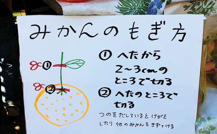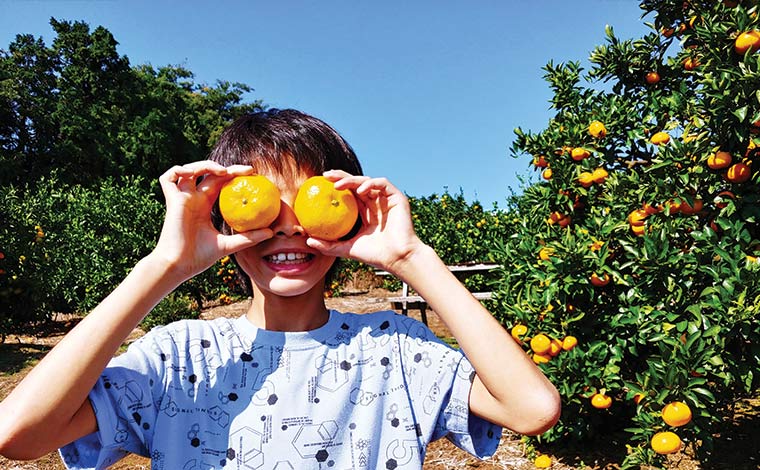 おいしいみかんを見分けるポイントは、ヘタからお尻まで黄色く熟しているものを選ぶこと。木によって甘くてジューシーなものや、爽やかな酸味があるものなど、味が少しずつ違っているのも特徴で「こっちのほうが甘いよ!」など家族でわいわい言いながら選ぶとより楽しめます。
