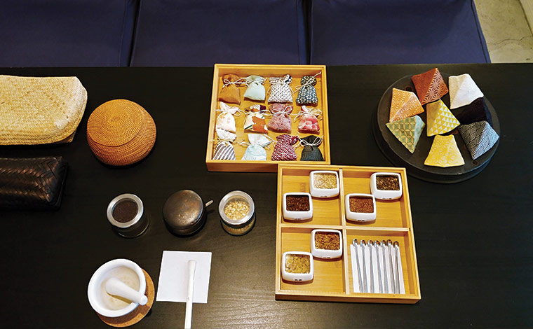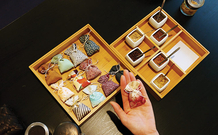 「香り袋づくり」は体験時間約30 分と手軽にできるワークショップ。白檀や桂皮、