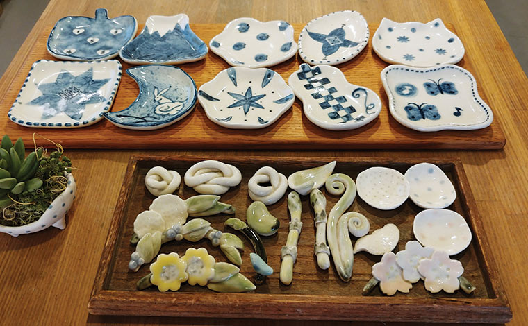 「粘土遊び」は手びねりで箸置きやブローチ、小さな植木鉢など好きなものをつくり、色付けをします。1回分の粘土で植木鉢なら2つ、箸置きなど小さなものなら5~6個ほど作れます。
