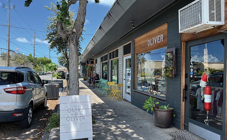 シナモンズ・レストランから徒歩7~8分、キハパイ通り周辺には素敵なブティックやカフェが集まっています。ロコガールのアリさんがセレクトするアパレルやロコアーティストの作品が並ぶ「オリーブ・ブティック」や、ビンテージ雑貨からカジュアルでセンスの良いアパレルまで扱う「オリバー・メンズショップ」は必見!