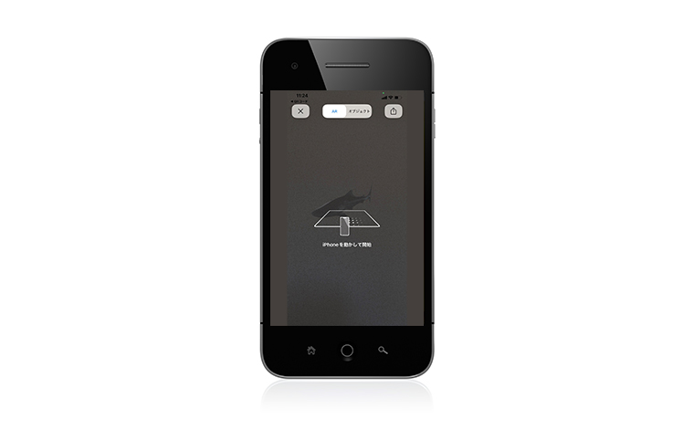 上記から専用ページへ遷移します。ARが起動するので、まず左右や地面などスマホを動かして空間を読み込むようにします。