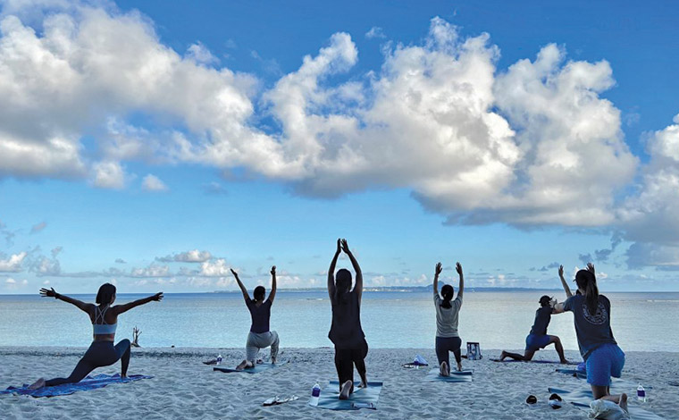 朝と夕方、日に2回開催される「ビーチヨガレッスン」(有料)は人気のプログラム。モーニング ビーチヨガレッスンで身体を目覚めさせ、サンセット ビーチヨガレッスンで1日の疲れをほぐしてみませんか。青い海を目の前に臨む白い砂浜で、呼吸を整え、身体を伸ばす心地よさをぜひご体感ください。