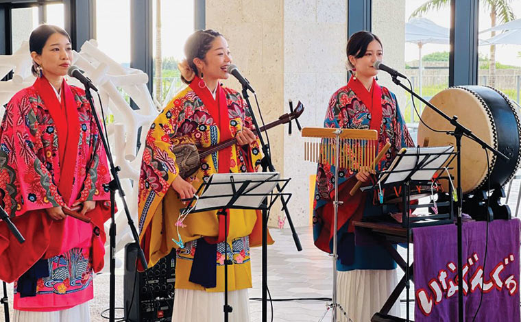 毎週金曜日の夜にロビーで開催される「沖縄民謡ライブ」は、無料でご鑑賞いただけます。演奏するのは、本部町の沖縄民謡ユニット「いなぐんぐゎ」。夕食後のリラックスタイムに、三線の音に癒やされる特別なひとときを過ごしてみませんか。
