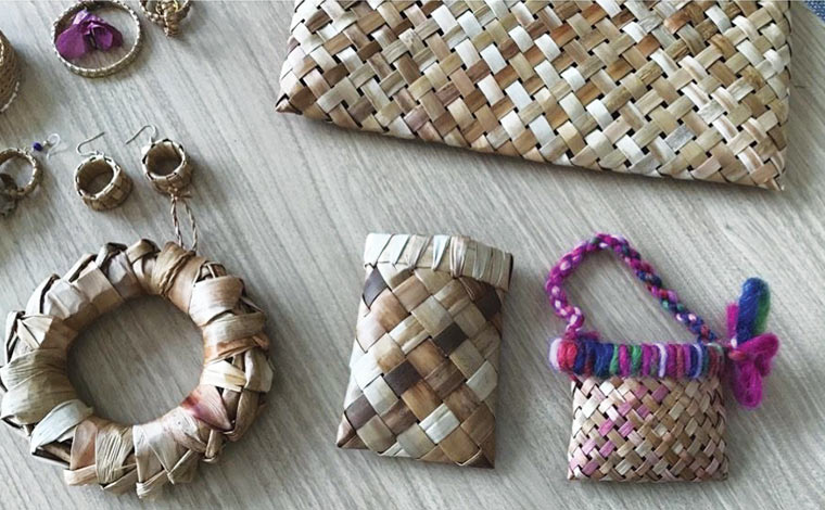 「月桃編み・アクセサリーワークショップ」は、3ヶ月ほど乾燥させた月桃(げっとう)で、ポーチやアクセサリーなどを作ります。月桃はショウガ科の植物で、虫除けとしての活用をはじめ、お茶、アロマオイルなど、沖縄では古くから薬草として親しまれてきました。爽やかな月桃の香りに包まれながら、お好みのアクセサリーを作ってみませんか。(不定期開催)