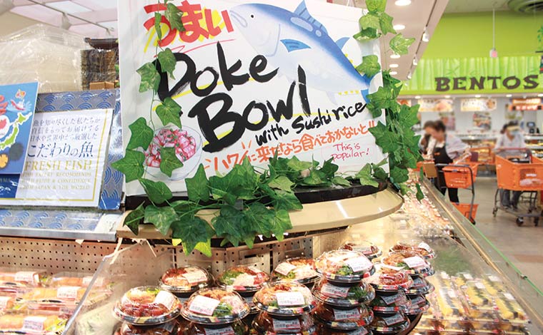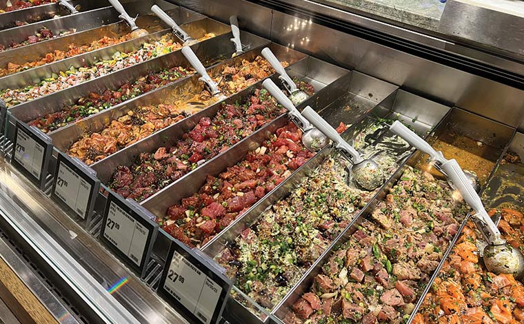 クヒオ通り、リリア・ワイキキの2階に2023年1月にオープンした「ワイキキマーケット」。入り口のすぐ近くにあるのがテイクアウトできるデリやポケのセクションです。