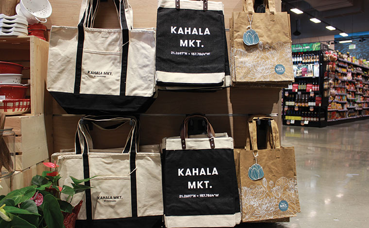 ちなみに、オアフ島のスーパーやショップでは購入したものを入れる紙袋などが有料なので、お買い物時はエコバッグを持参するようにしましょう。カハラマーケットはハワイのローカルスーパー・フードランド系列なので、ハワイらしくてかわいいエコバッグやクーラーバッグがたくさん揃っています。買ってその場で活用でき、1個1ドル~とプチプライスなものもあるので、お土産用にまとめ買いする方も多いようです。