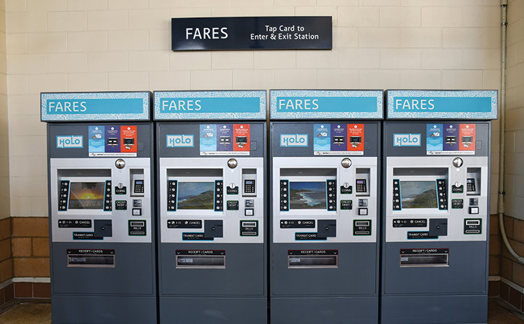 この鉄道は、Holoカードがないと乗車できません。Holoカードの購入、チャージ、残高確認は、スカイライン各駅にある券売機で行えます。料金は、ザ・バス同様1回3ドルです。そして、このスカイラインとザ・バスは連携していますので、Holoカード利用者は、ザ・バスからの乗り継ぎが無料、ザ・バスのワンデーパスも適用されるので、ザ・バスとスカイラインの両方を使って西オアフ方面を訪れることもできます。スカイラインの3つの駅には、ザ・バスのバス停もあり、スカイラインとザ・バスへの乗り換えもスムーズです。