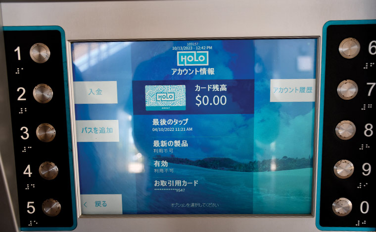 続いて、Holoカードの残高やチャージする方法です。慣れると簡単なのがHoloカード公式サイトからの手続き。日本語でも表示されるので英語が苦手な方でも安心です。初回は、アカウント作成を行う必要がありますが、それ以降はログインするのみで、残高確認やチャージができます。オンライン以外からのチャージは、セブンイレブンとスーパーマーケットのフードランドとタイムズ(大半の場所では、チャージは現金のみ)、もしくは電話 1-808-768-HOLO (4656)、カリヒ・トランジット・センター、スカイライン各駅の券売機で可能です。