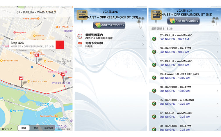 無料アプリ「DaBus2」を使ってカイルアタウンへの行き方の検索方法をご紹介します。